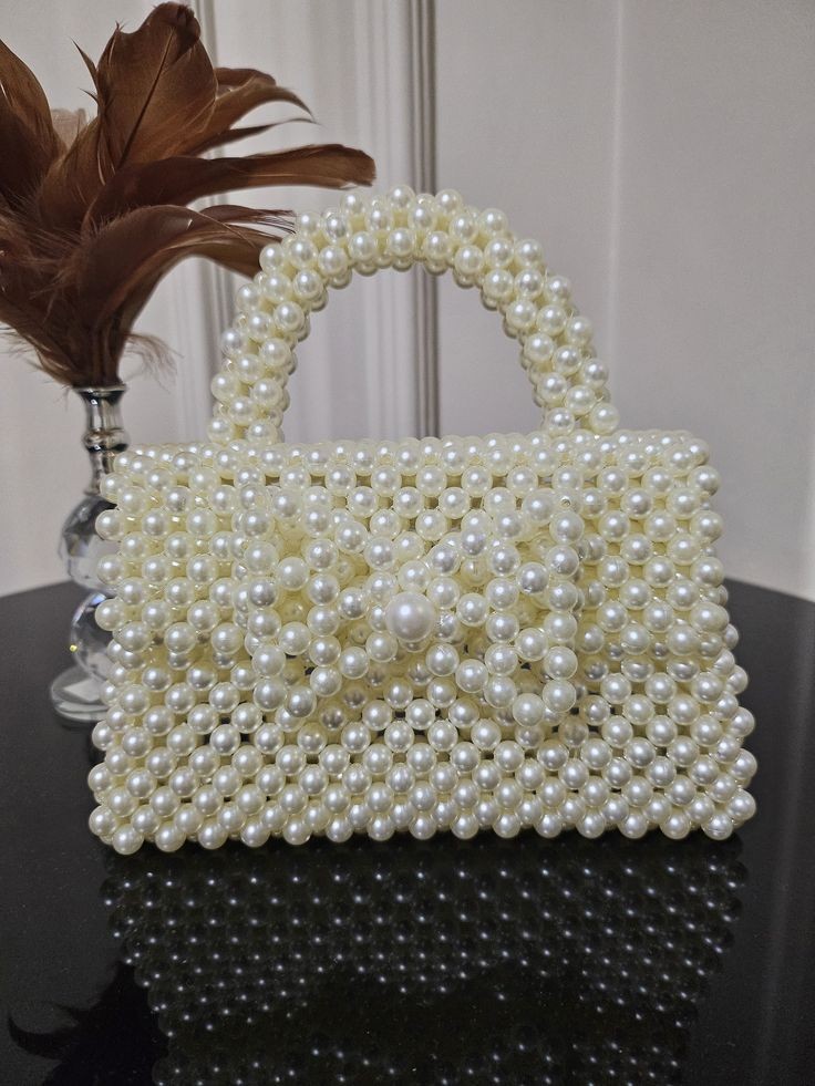 کیف مرواریدی مجلسی بافته شده با مروارید شیری رنگ که در رنگبندی دلخواه شما قابل سفارش است.