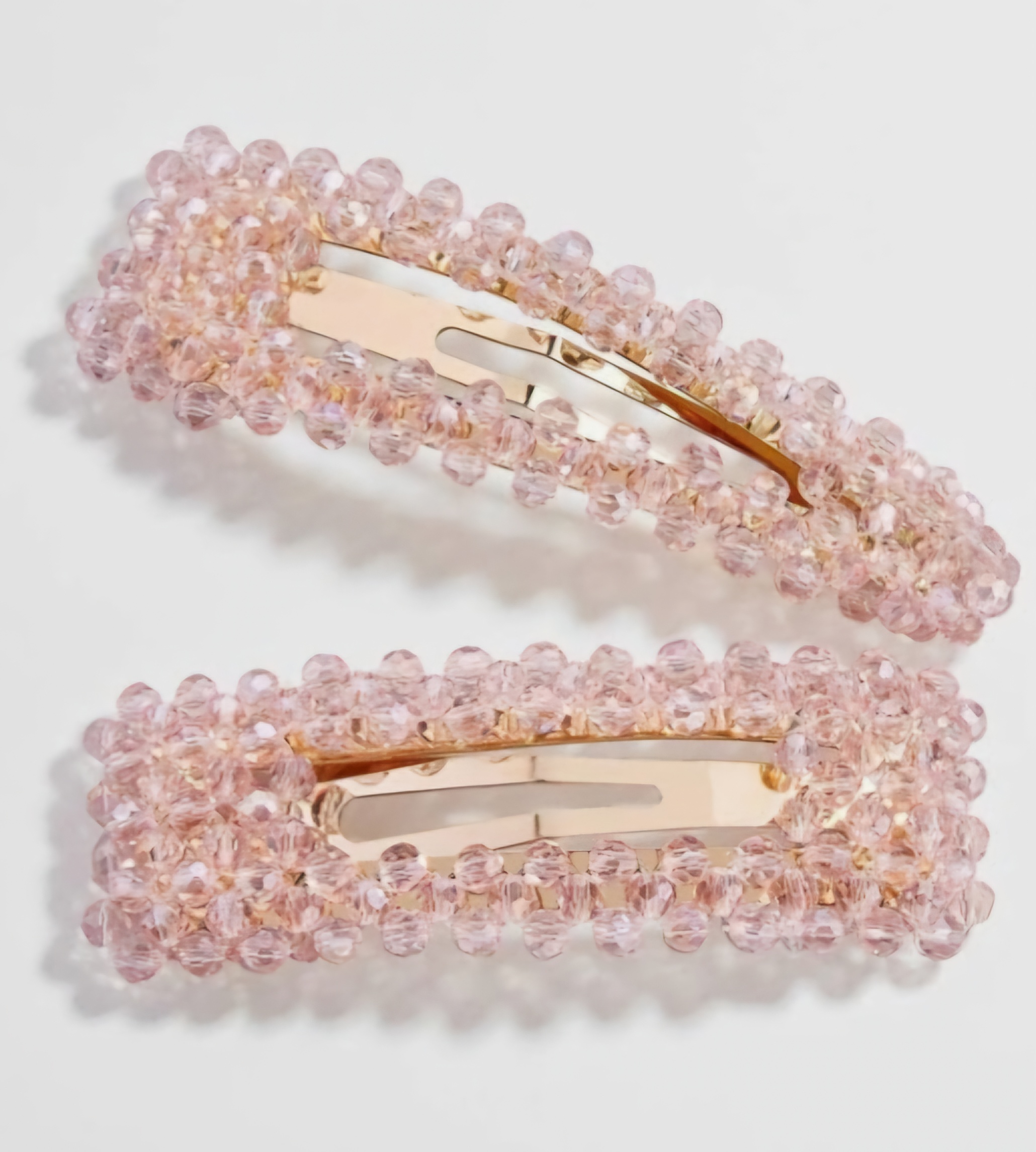 گیره فانتزی بافته شده با مروارید کریستالی صورتی رنگ در دو مدل ، فروش بصورت جفت میباشد.